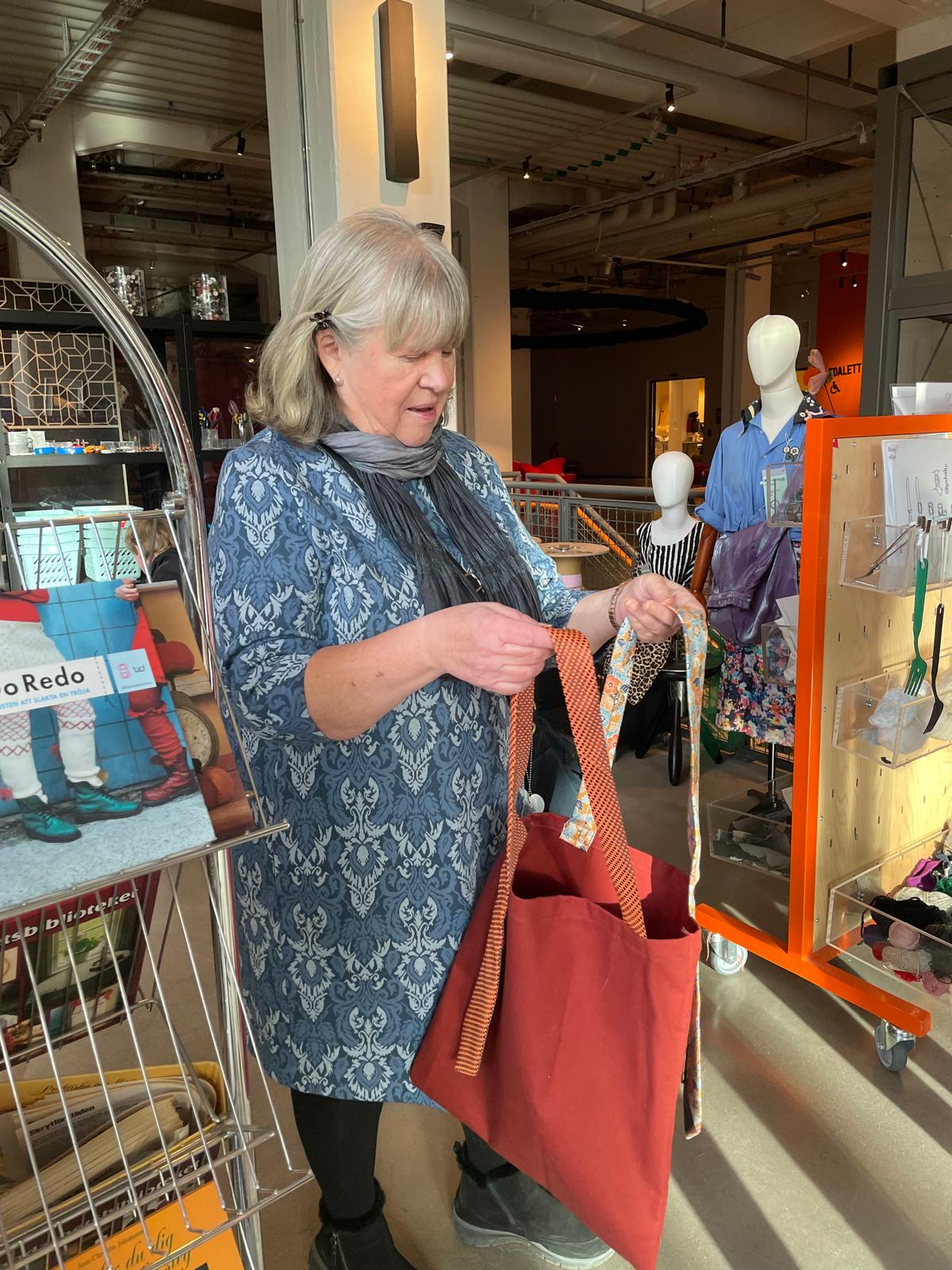 Tutustuimme ensin "Sven Fristedt – Mästare i mönster"-näyttelyyn, jonka jälkeen kiinnostuneille klo 14.00 "Tarinakahvila suomeksi".